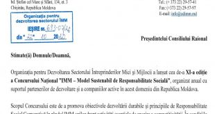 Citeste mai departeCONCURSUL NAŢIONAL ANUAL „IMM – MODEL SUSTENABIL DE RESPONSABILITATE SOCIALĂ” ediția a XI-a