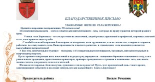 Уважаемые жители села Березовка! От всей души поздравляю Вас с праздником, посвященным 90-летию со дня образования Вашего села! Пусть ваша неиссякаемая энергия и талант способствуют исполнению всех ваших желаний и осуществлению намеченных планов! Пусть рядом с вами всегда будут достойные люди и надежные друзья! С уважением, Председатель Района Василе Романюк