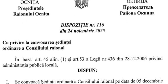 AUDIERI PUBLICE A PROIECTELOR DE DECIZII PENTRU ȘEDINȚA CONSILIULUI RAIONAL OCNIȚA DIN 07 APRILIE 2023