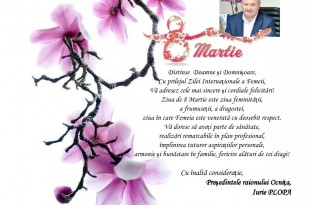 Citeste mai departeMesajul de felicitare al președintelui raionului Ocnița, cu ocazia Zilei de 8 Martie